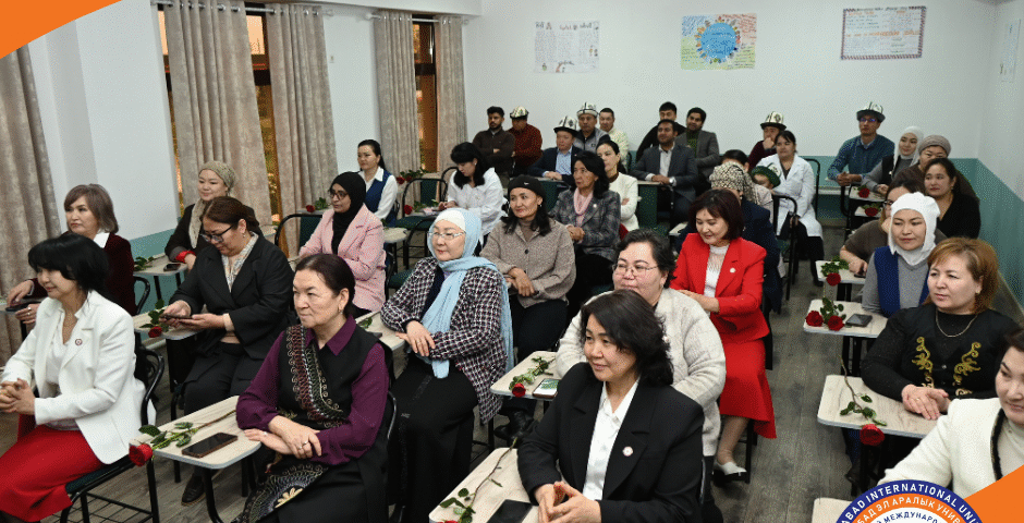 The celebration took place in a warm, ceremonial, and festive atmosphere. University leadership congratulated the female faculty members for their dedication and professionalism. President Zh.T. Arynbaev, Chairman of the Trade Union K. Rayimbekov, Rector M.R. Narbaev, Vice-Rectors E.Sh. Torokulov and Dipak Chaulagain, and Dean Sh.M. Astanov expressed their sincere appreciation and respect to women educators for their hard work, professionalism, and contribution to the development of education.