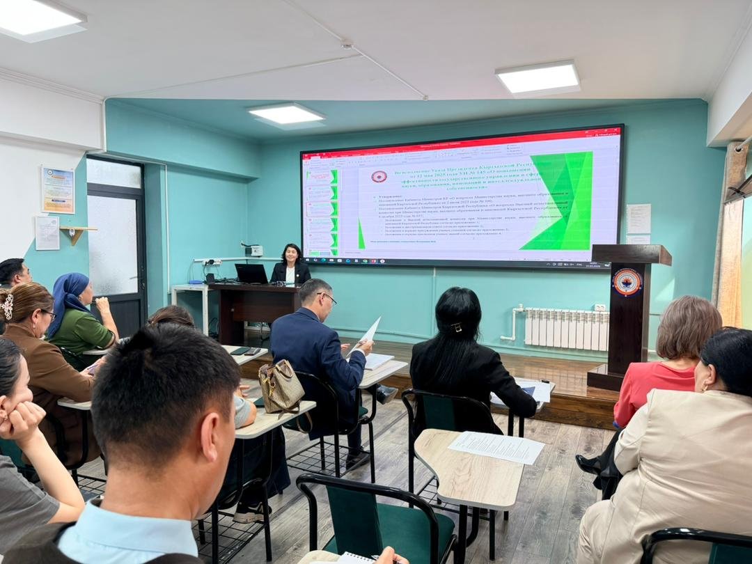 Within the framework of the seminar, the participants became acquainted with the new regulations on the Higher Attestation Commission under the Ministry of Science, Higher Education and Innovations of the Kyrgyz Republic, dissertation councils, the procedure for awarding academic degrees, and the conferment of academic titles. Particular attention was paid to the updated requirements for the topics of dissertation research, the publication activity of applicants, the procedures for public discussion of dissertations, as well as the issues of pre-defense and the organization of public defense.